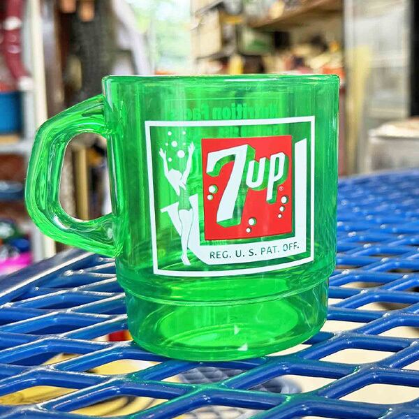 ファイヤーキングをモチーフにしたアンティークグラス風のプラスティック製スタッキングマグカップに【7UP】クリアバージョンです♪