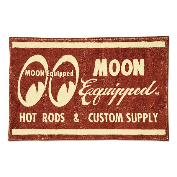 スタンダードな MOON Equipped ロゴとアイシェイプ ロゴ デザインのチョコレート ブラウン カラーのソフトなフロアマットです。