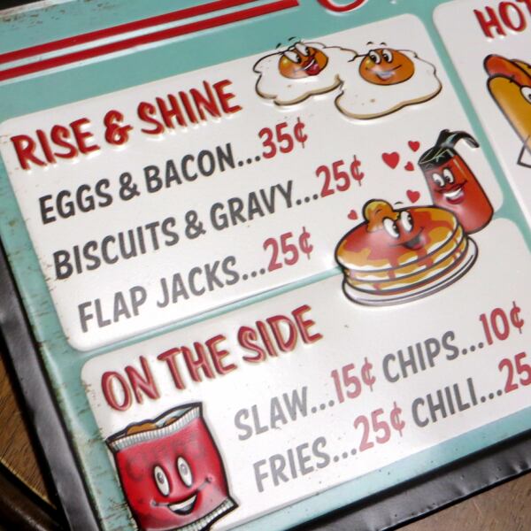 レストランのメニュー表の看板で、アメリカの古びた小さなレストランで本当に置いてあるような雰囲気♪